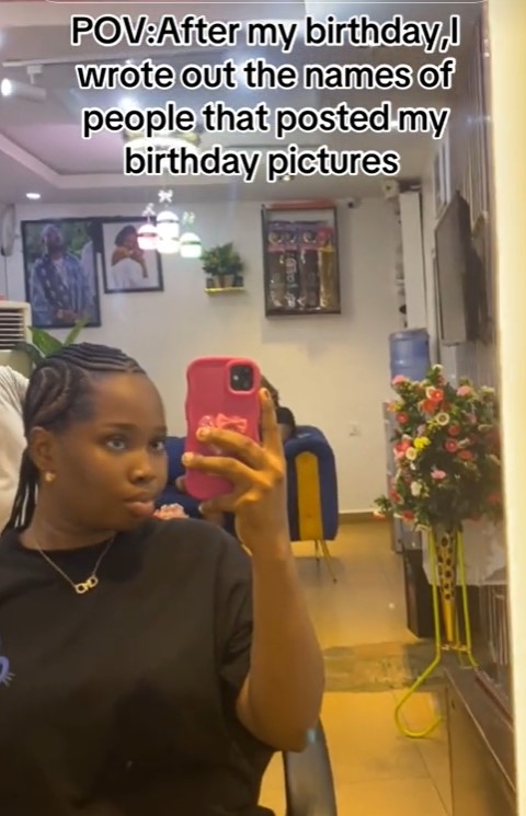 A lady has got people talking as she compiled a list of individuals who acknowledged her birthday by posting her pictures.