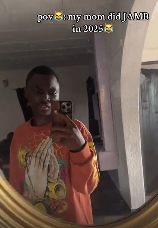 In the clip, the man @_just_thims shared his mum’s hilarious remark via voice note to showcase her excitement towards the success of her JAMB exam.