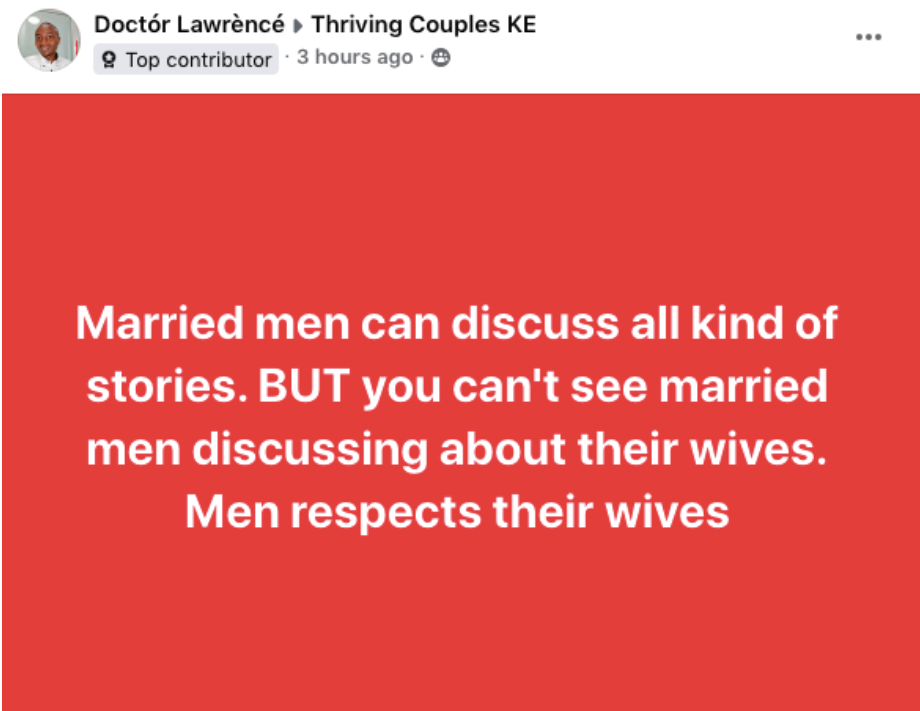 Dr. Lawrence noted in his Facebook post, “Married men can discuss all kind of stories. BUT you can’t see married men discussing about their wives. Men respects their wives.”
