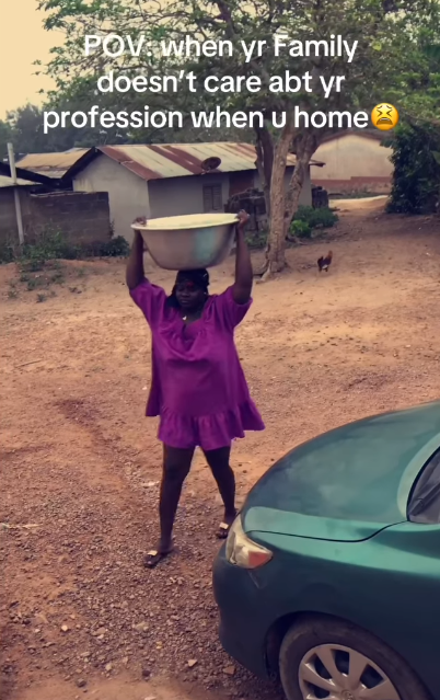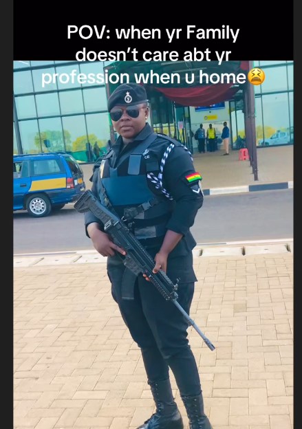 Sharing on TikTok, the police officer @jennyluv9 wrote in the caption that she was mandated to do household chores because her family doesn’t respect her profession at home.